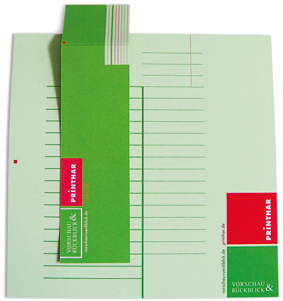 | Für die Pflege neuer Geschäfts- kontakte sowie treuer Kunden ist ein Schreibblock im Format von 18x18 cm hergestellt worden. Da es sich bei den Empfängern um Anzeigenkunden der Zeitschrift Vorschau & Rückblick handelt, ist es sinnvoll, statt eines Schreibgerätes ein Lesezeichen beizulegen. Die Verwendung der Hausfarben wie auch die Positionierung technischer Daten auf beiden Produkten ist wichtig. Ein persönliche Gruß in Form einer Unterschrift baut eine direkte Verbindung zum Empfänger auf. Die Verpackung mit einer transparenten Briefhülle wertet das Ganze auf. Ob auf klassischem Postweg und/oder per E-Mail bzw. mit Mitteln des Web 2.0 wie Xing, Facebook oder Google+... bewerben Sie Ihre Leistungen/ Produkte und schauen Sie, wie Sie Ihre Kunden abholen können, damit Sie weiterhin im Gespräch bleiben und dadurch neue Aufträge für Sie generiert werden. < < < |